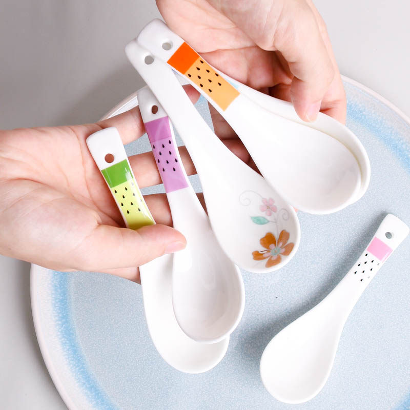 Random A small spoon (random style) Small yellow spoon(G)Blue flower spoon Blue line large spoon Brown spoon coarse porcelain spoon Black glossy spoon line spoon Beige spoon Orange spoon Pink spoon Purple