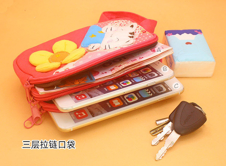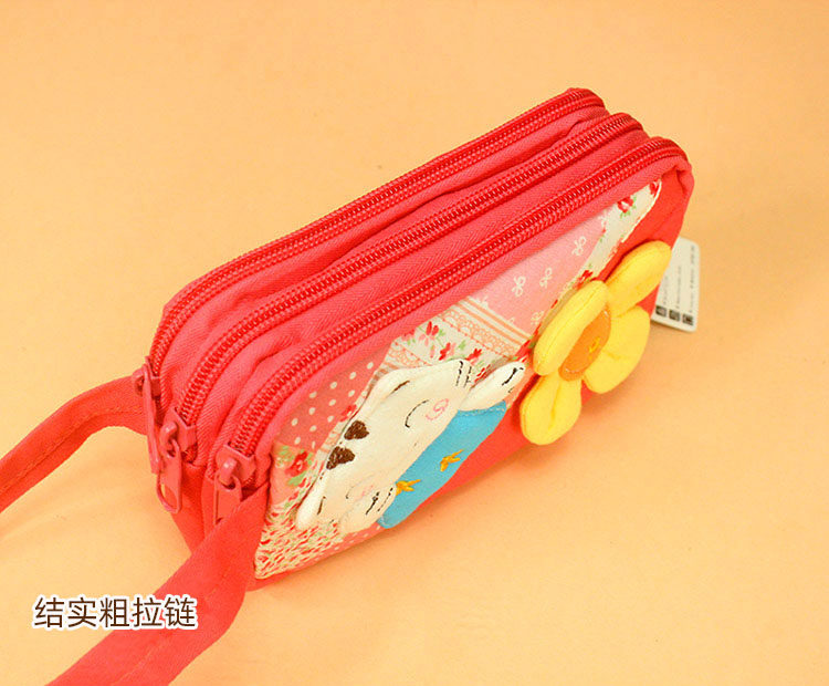 Alacat Korean version of the canvas Handbags ladies' phone bag Three layers of zero wallet Cartoon Hands Grab Bag Cute Wrist Bag