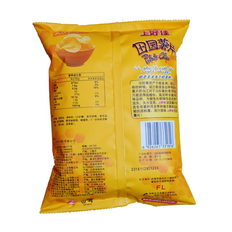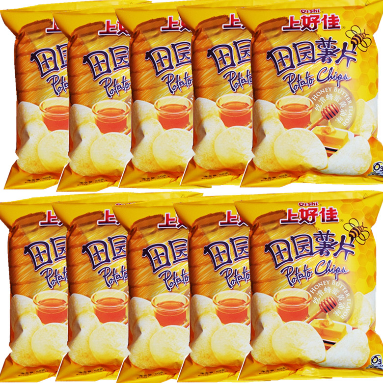 Shanghao Jia silky honey cream flavor pastoral potato chips 50gX10 bags of leisure puffed snacks gift pack