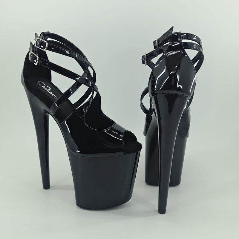 Leecabe Summer Sexy Women Shoes 20CM Ultra High Heel Black Lacquered Leather Sandals Model Walking Show Fish Mouth Bag Shoes 1KZ