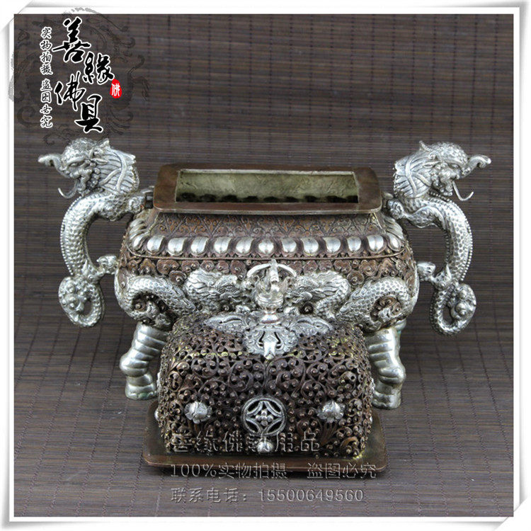 Imported Nepalese pure handmade red copper-red silver hollow double-dragon high-end burning incense stove lavender 31cm meters long