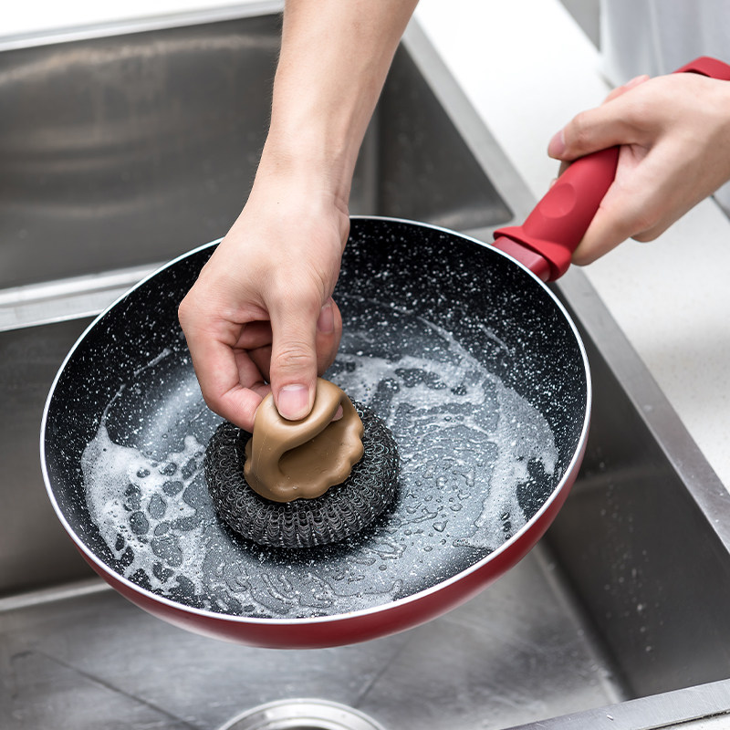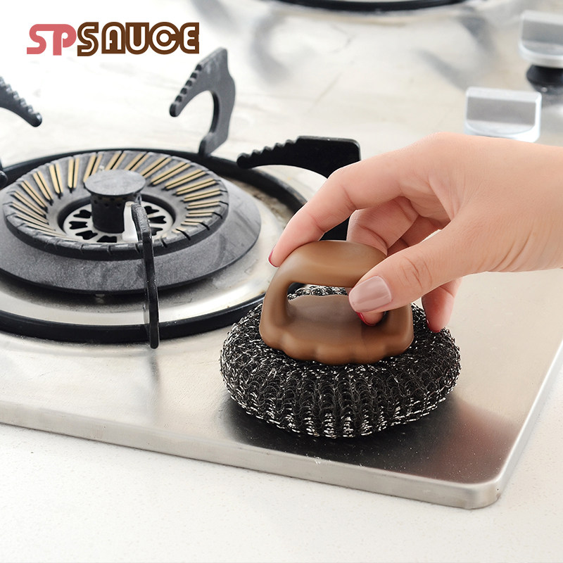 Kitchen brush with handle pot cleaning brush steel ball iron pot brush pot dishwashing brush household stainless steel wire brush