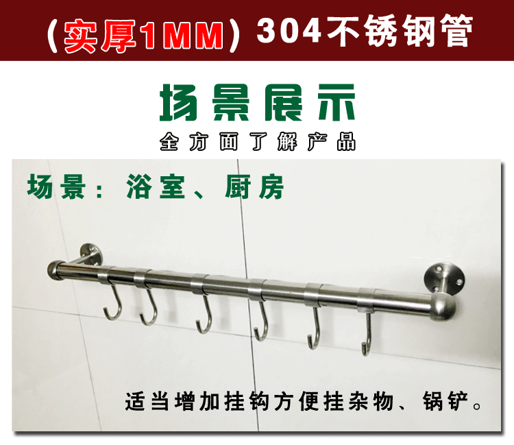 Customize 304 stainless steel towel lever Kitchen Hanging Rod single pole Top Hanging Clothes Rod dressing room Towel Rack Bath Curtain Rod