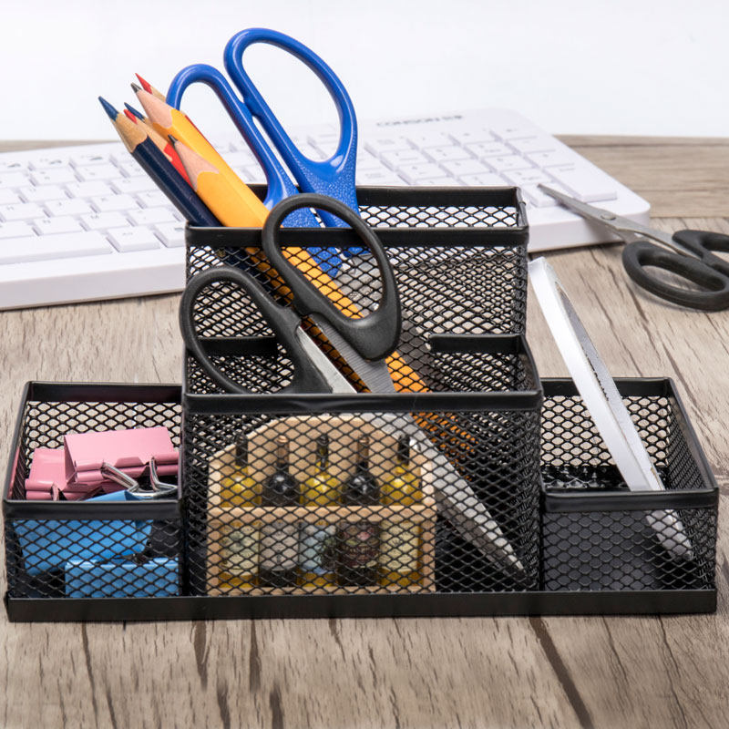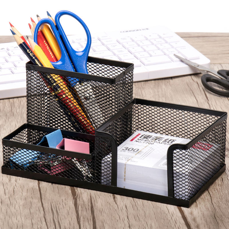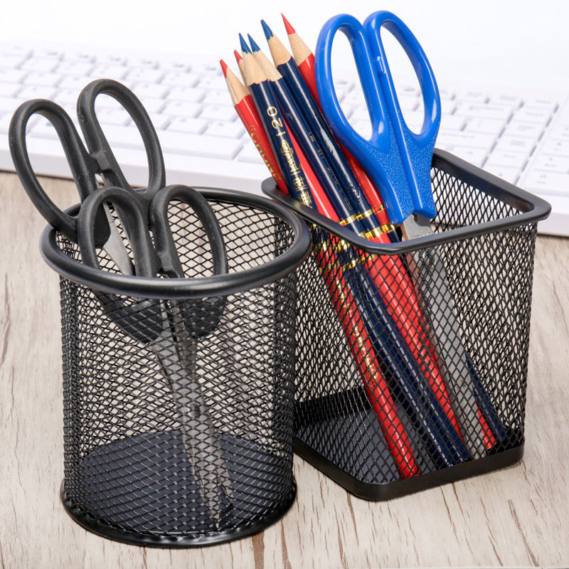 Metal mesh multi-function pen holder Round square three-grid four-grid desktop office stationery storage box