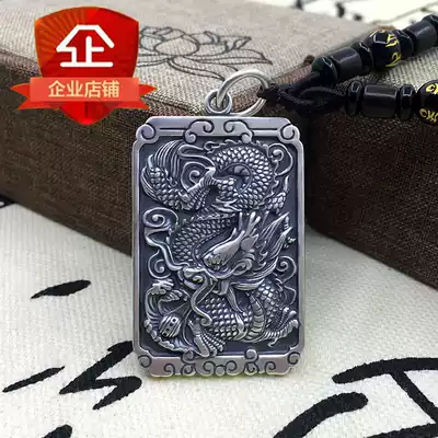 Thai silver dragon brand necklace 99 sterling silver vintage Chinese style totem Zodiac guardian pendant Men's domineering personality tag