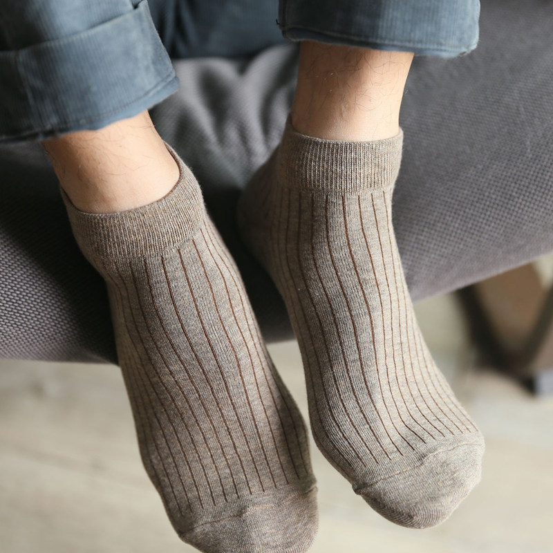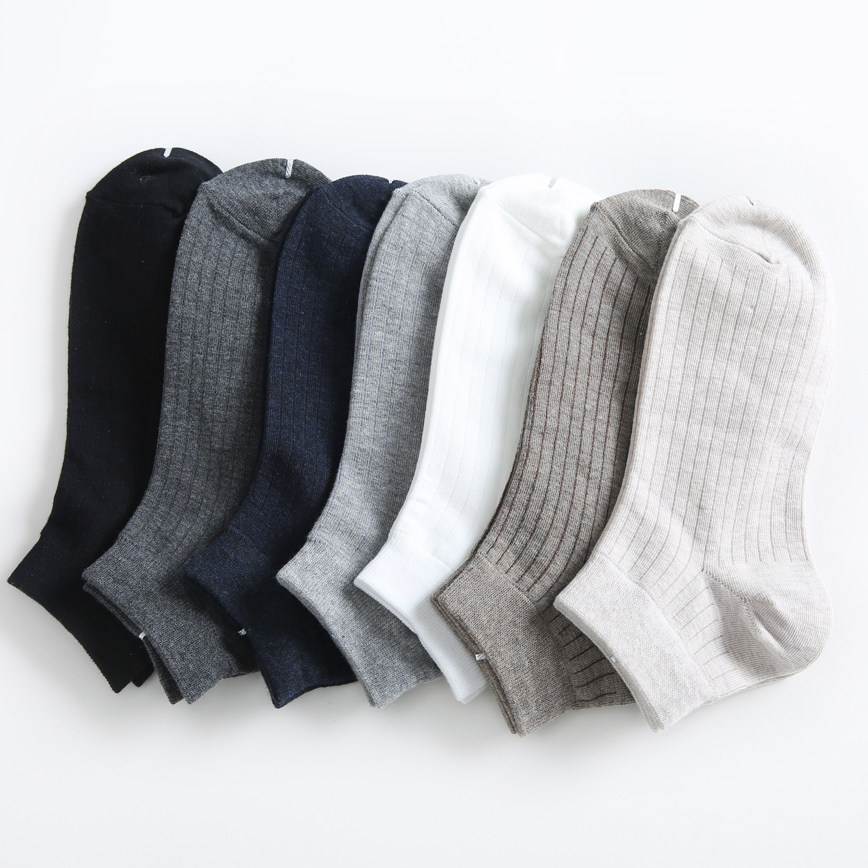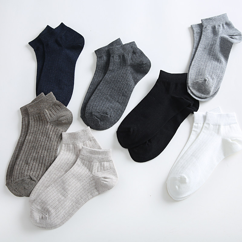 Simple solid color low-top invisible socks quality basic men's cotton vertical stripes invisible short socks for men