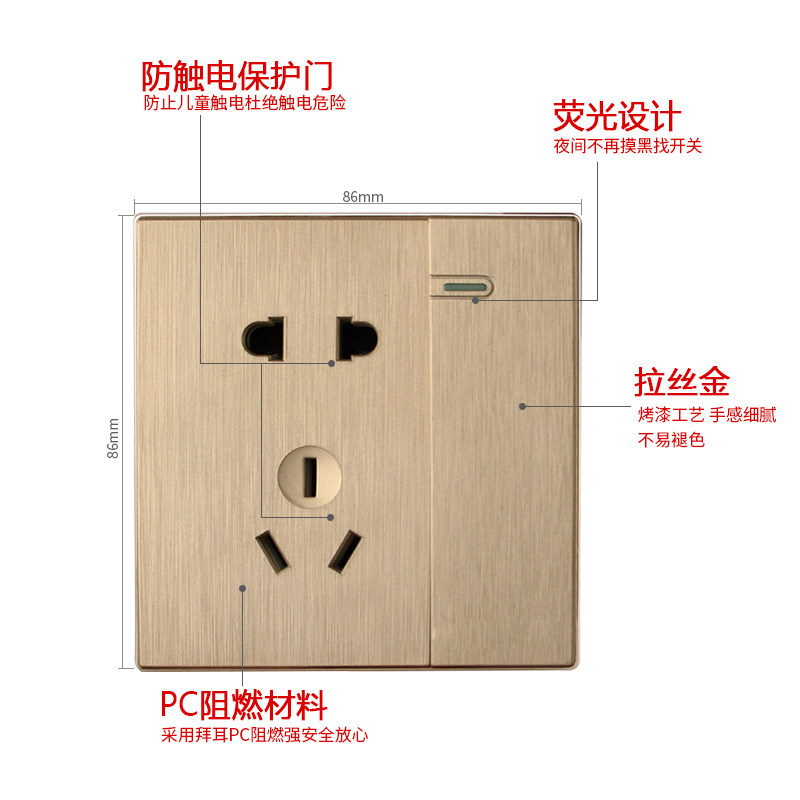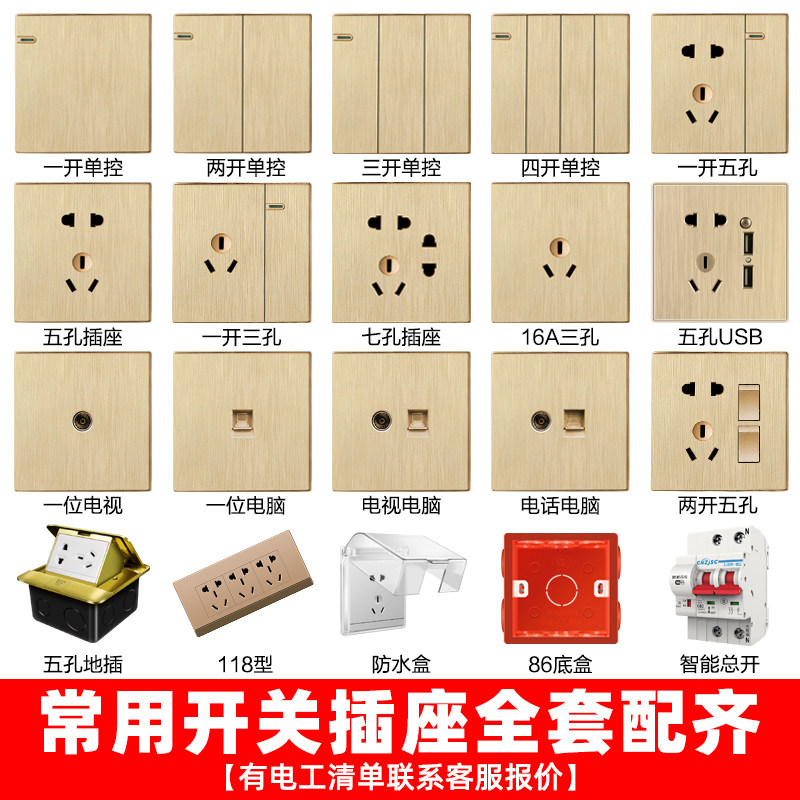 Yellow champagne bright yellow Ginger yellow apricot lemon yellow Light yellow white Five-hole socket One open single control one open double cut Two open single control two open double cut Three open single control three open double cut Four open single control four open double cut 16A
