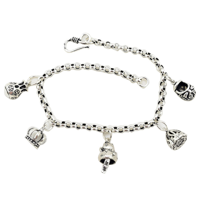 925 sterling silver anklet all-match bell lucky cat retro female and male personality Korean version of the student pendant ankle chain trendy niche
