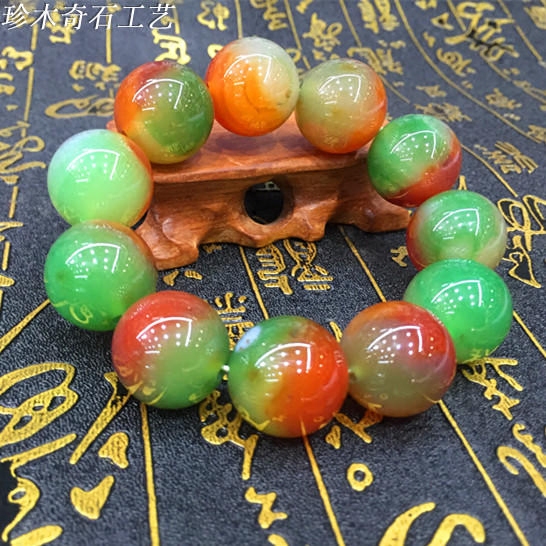 Natural Nanjing Yuhua Stone Malachite Green Agate Bracelet Red and Green Agate Bracelet 20MM Men