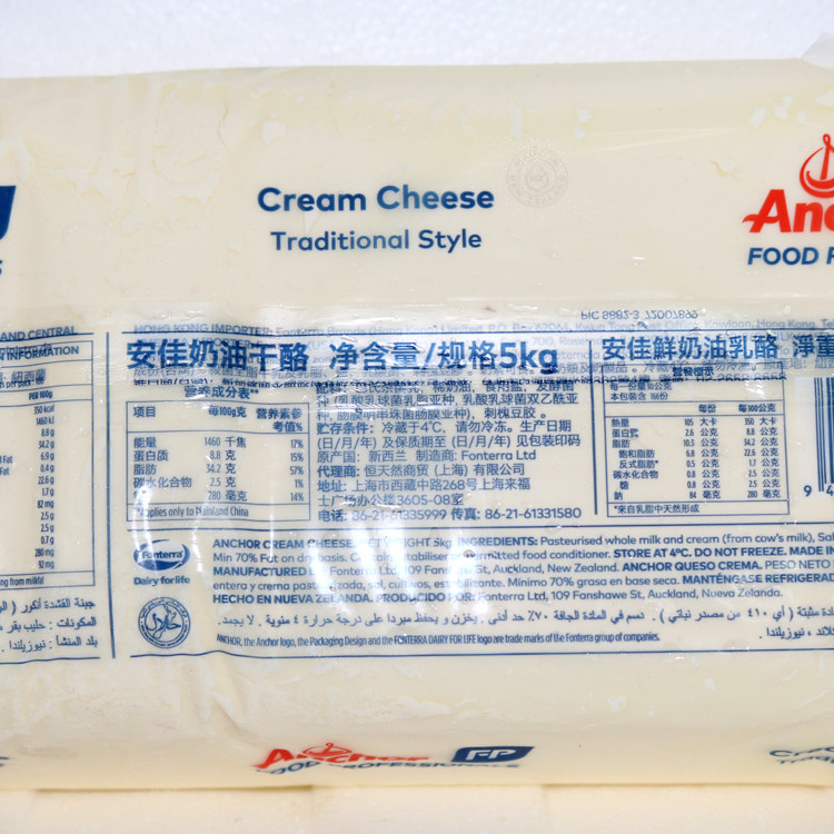 Anja Cream Cheese 5kg New Zealand Original Imported Cream Cheese Cheese Cheesecake Baking Raw Material