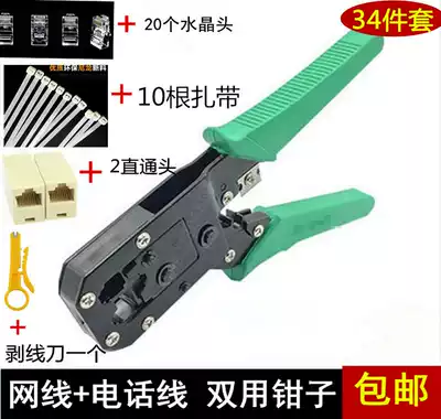 Network line crimping pliers wire stripper 20 crystal head 2 Network straight-through nylon cable ties 10