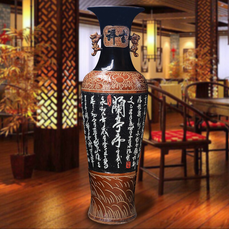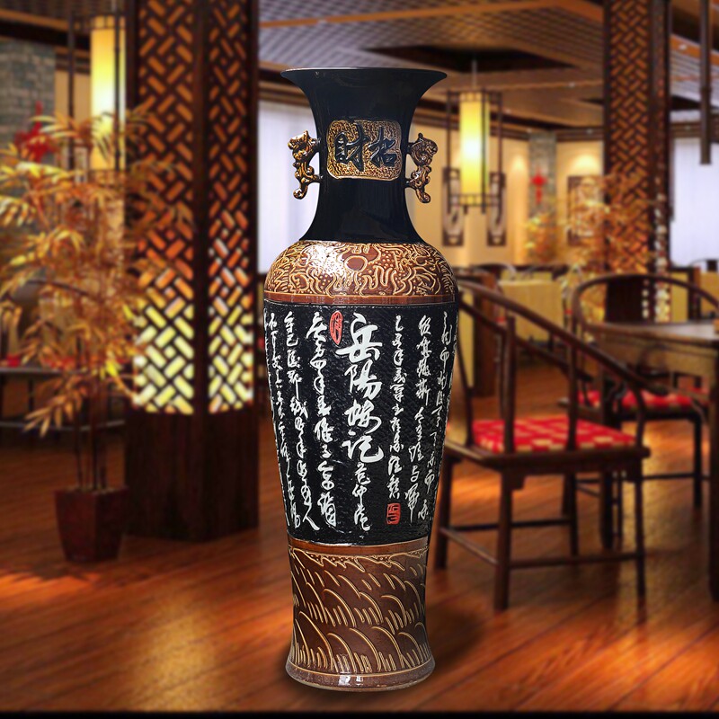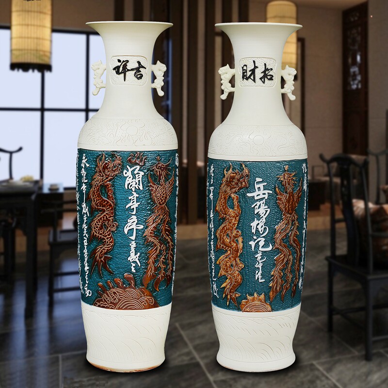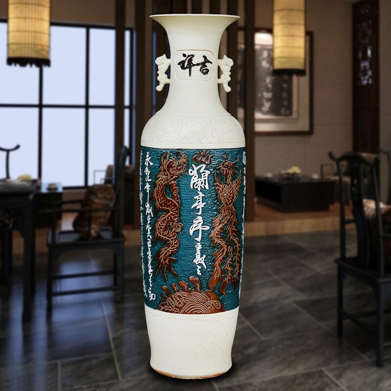 Jingdezhen ceramics high-grade floor-to-ceiling large vase antique carved characters modern living room decoration hotel decorations