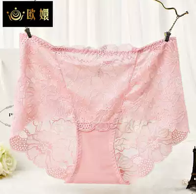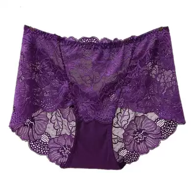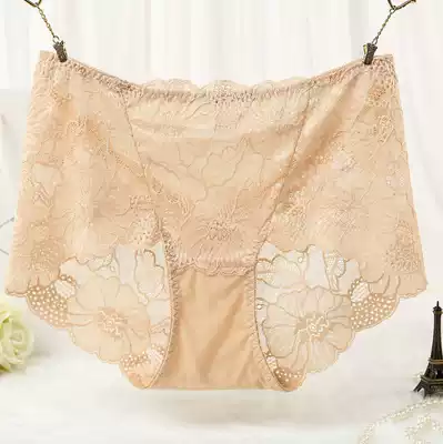 Fat mm plus fat plus lace women's panties sexy transparent large size women's high waist abdomen seamless briefs thin head