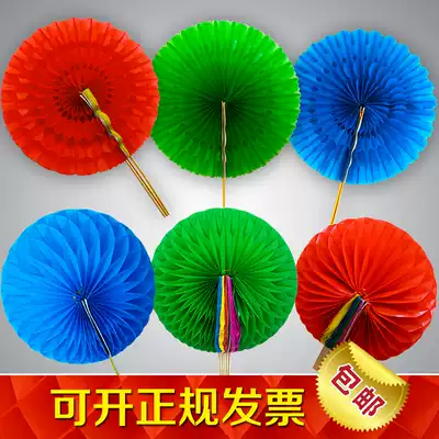 Hand-turned flower spherical fan five-color multi-color discoloration fan School games opening ceremony dance gymnastics props