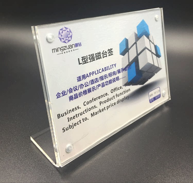 90*128 L-shaped Taiwan brand high-grade transparent acrylic strong magnetic double-sided table card table card table card display card 8203