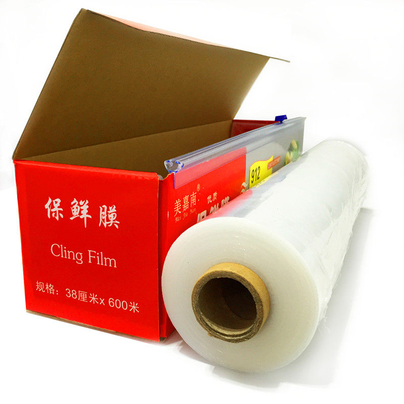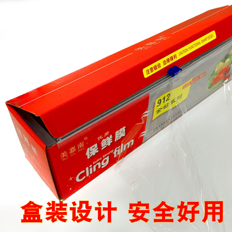 PE cling film box with cutter Large roll household economic packaging High temperature packaging Microwave oven refrigerator cling film