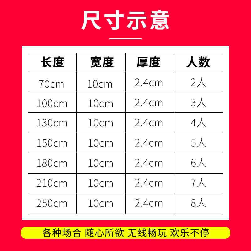 Two-person board 1 pair of three-person board 1 pair of four-person board 1 pair of five-person board 1 pair of six-person board 1 pair of seven-person board 1 pair of eight-person board 1 pair of two-person board Shoes 1 pair with hand rope