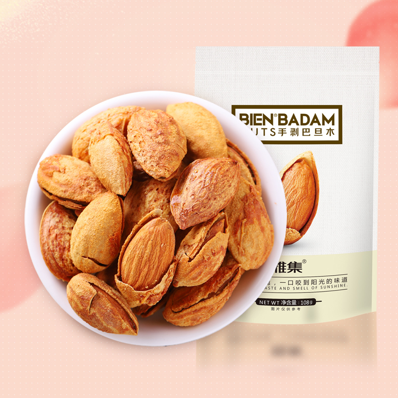 Yaji hand-peeled Badamu 500g nuts fried dried fruits Office snacks Badamu almond kernels