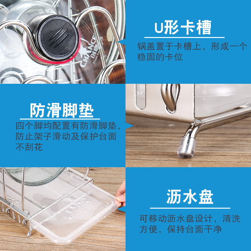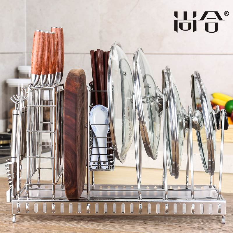 304 stainless steel pot cover rack kitchen storage rack multi-functional cutting board rack cutting board rack knife rack with water tray