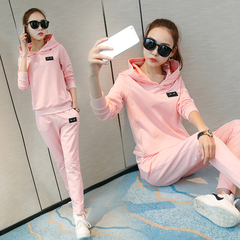 Casual Sports Suit Women Spring Autumn 2022 New Lianhood Head Fashion Han version Long sleeves thick cotton T Two sets of damp