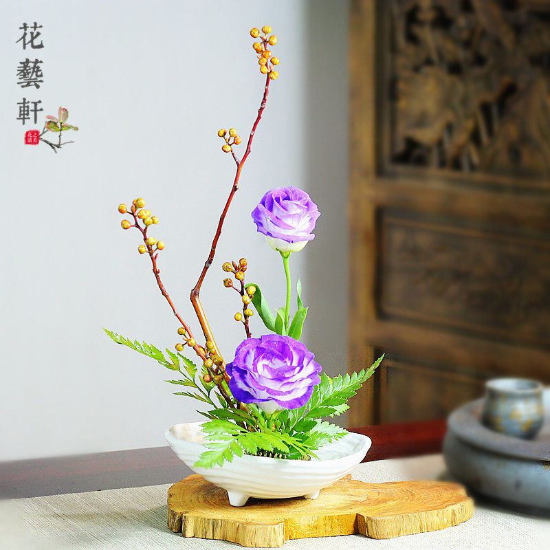 Sun-style sword mountain flower arrangement ware water fairy water pelvis ceramic imitation porcelain flower pot Chinese style retro meditation tea ceremony soft material