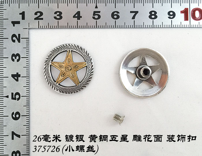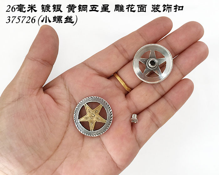 26 mm silver plated brass Five Star Carved Face Decoration -375726 (small screw) - Beijing Pitt Workshop