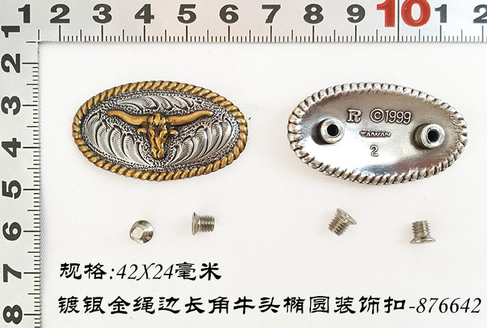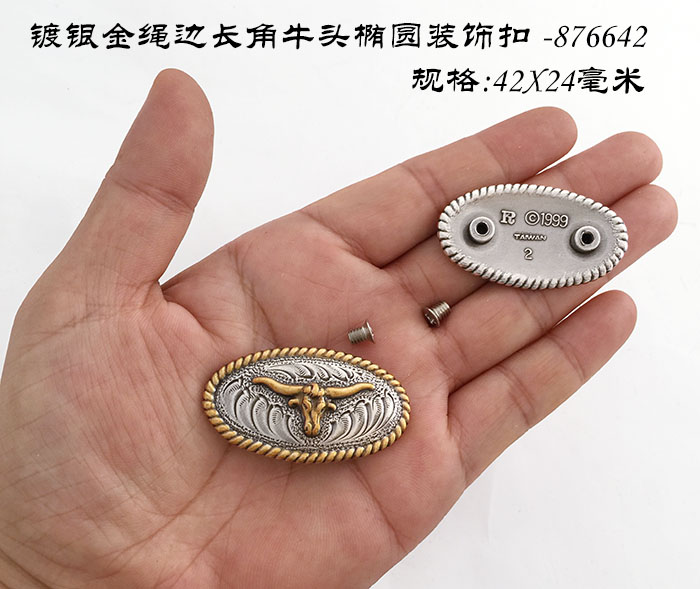Handmade leather art 42X24 mm silver plated gold rope side length Bull Head Oval decoration -876642 - Beijing leather