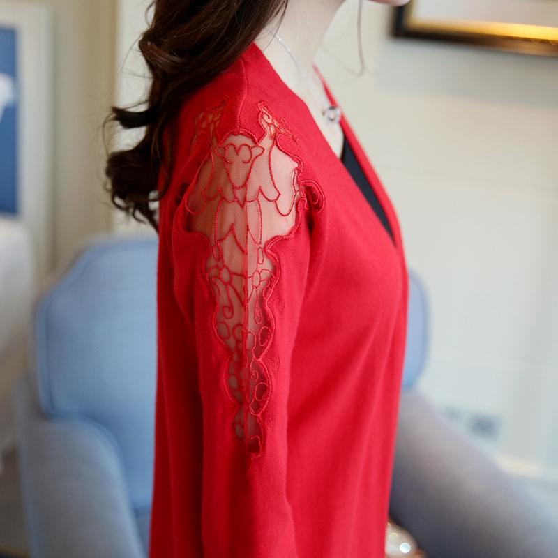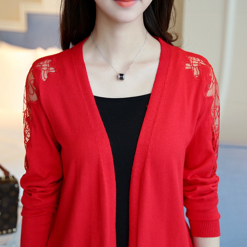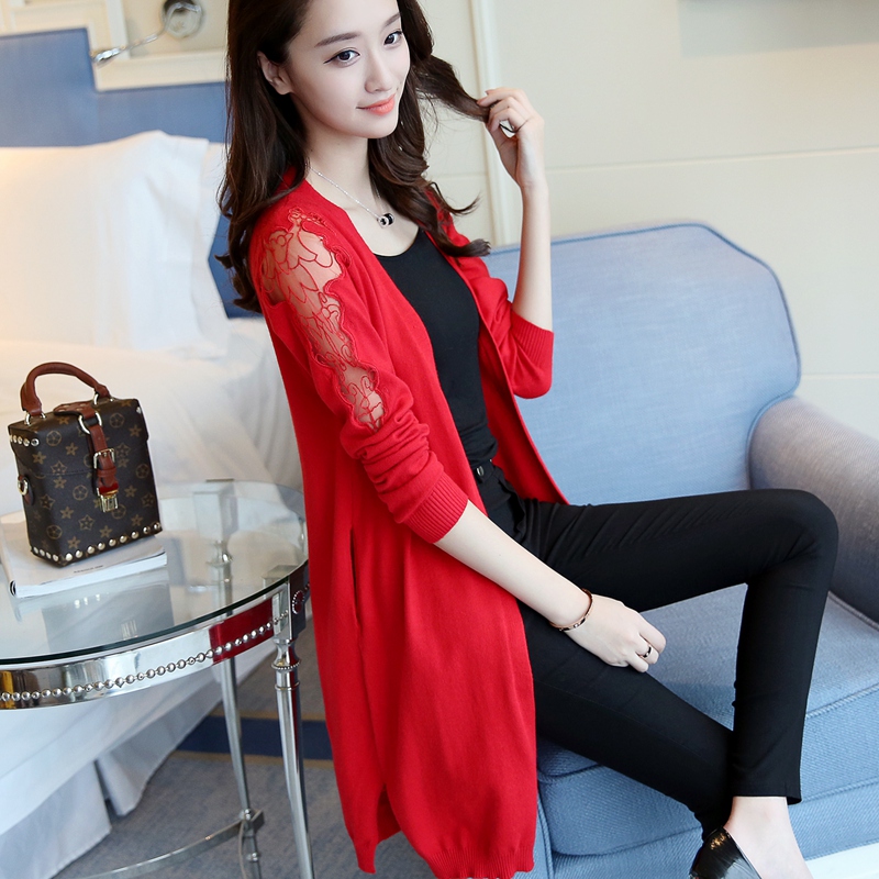 Knitted women's cardigan thin coat 2021 spring new embroidered lace outside the long shawl sun protection shirt autumn