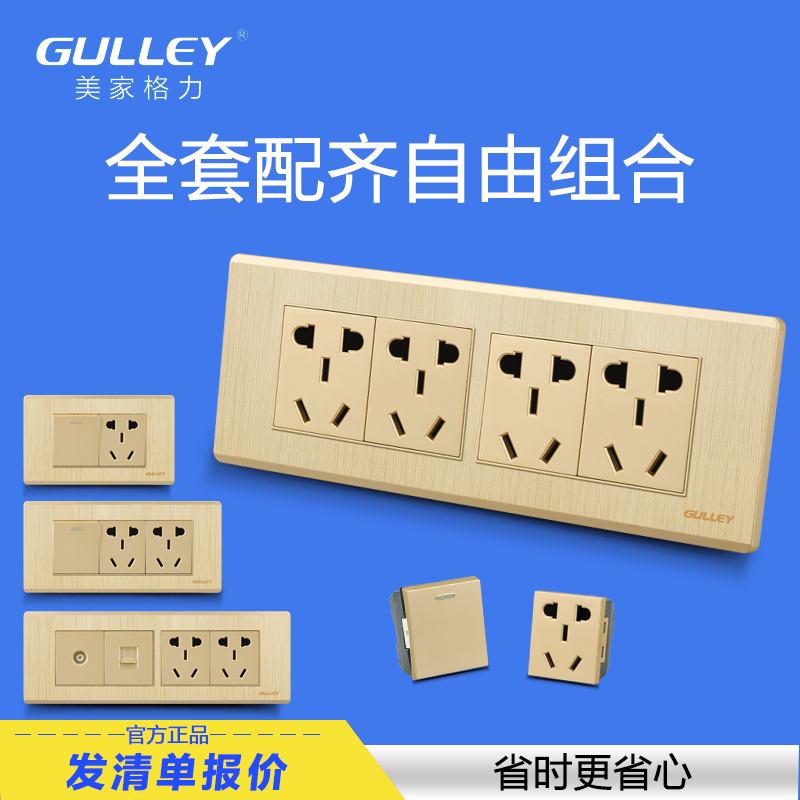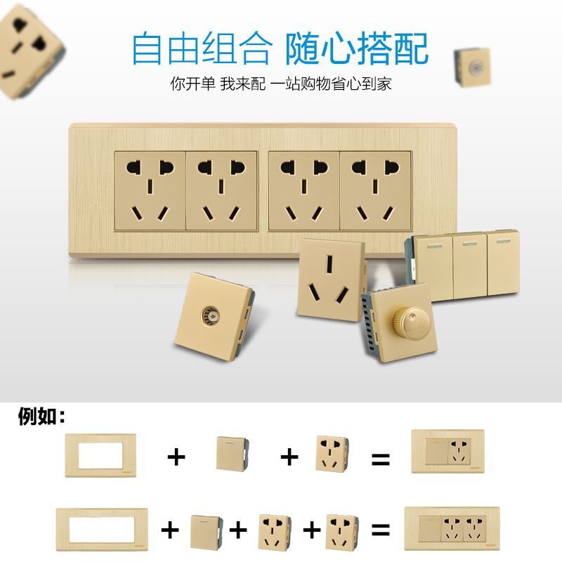Type 118 WALL POWER SWITCH SOCKET SIX HOLES TWO BITS ten HOLE PANEL DOUBLE INSERTS HOME DARK FIT 6 HOLES CHAMPAGNE GOLD COLOR