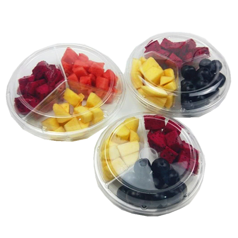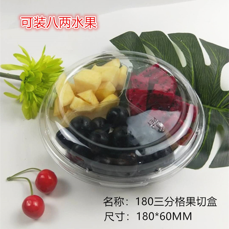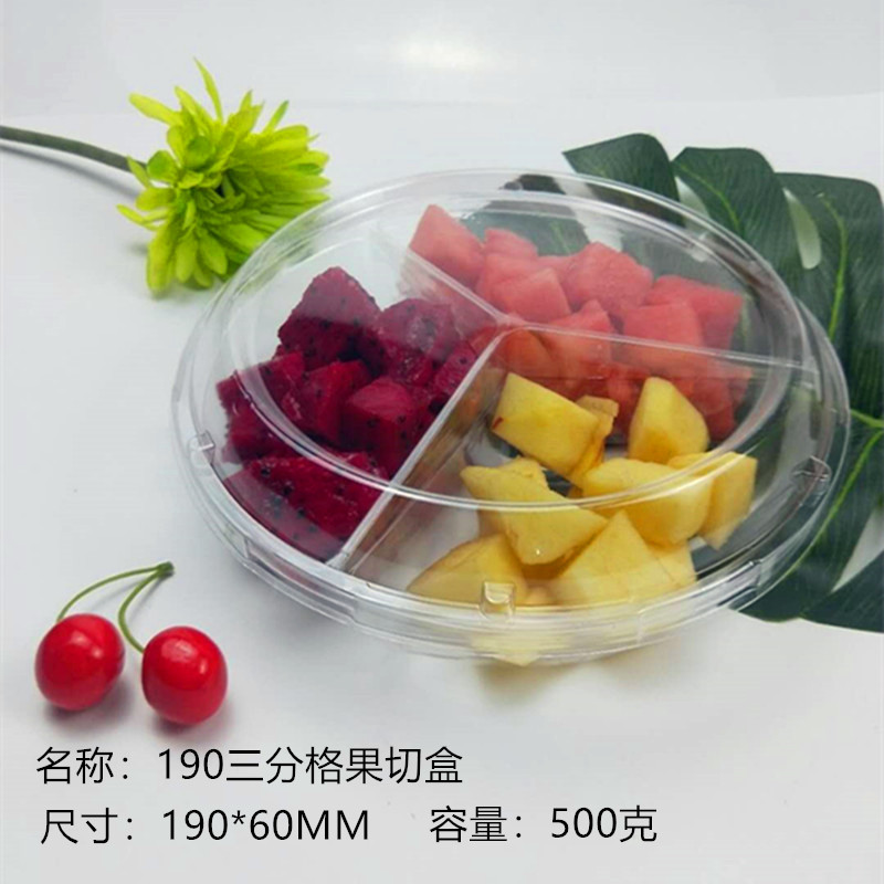 Fruit and vegetable music fresh-cut box three-division fresh-keeping box 500g three-piece disposable fruit food plastic box