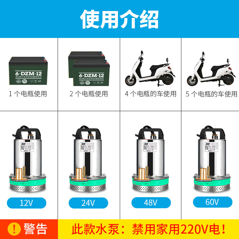 12V DC submersible pump 24V48v60v battery electric vehicle Agricultural irrigation small pump Household pump