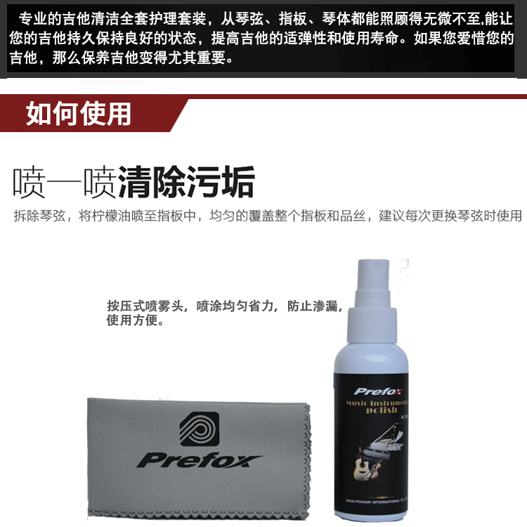 Prefox Guitar piano Care liquid Maintenance set Cleaning brightener Cleaning surface Cleaning surface cleaning cloth