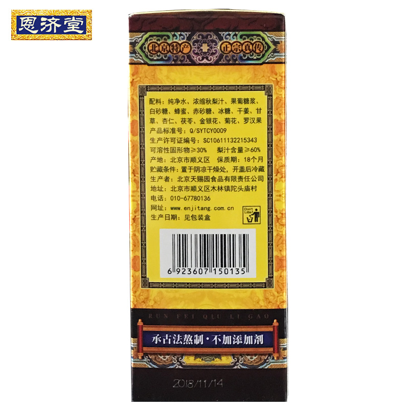 Beijing Enjitang autumn pear cream 350g 12 bottles of nourishing cream adult non-Laiyang ice sugar pear cream glass bottle