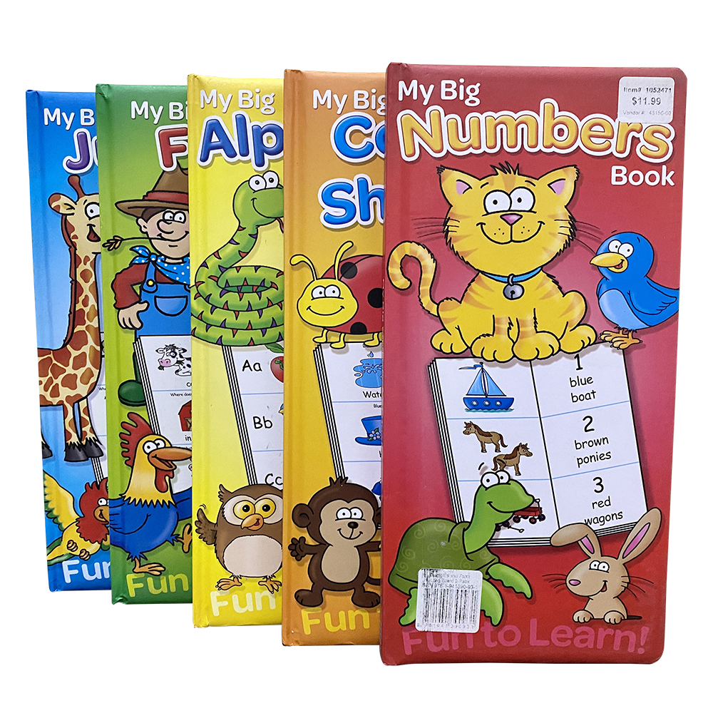 The farm register (green long strip book) Alphabet (yellow strip book) digital book (red strip book)