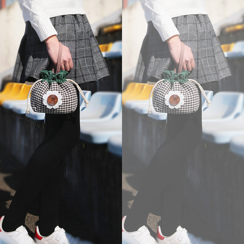 Tricolour patching program Anne plaid containing bag original cloth art drawing rope hand holding small bag with mobile phone zero money bag