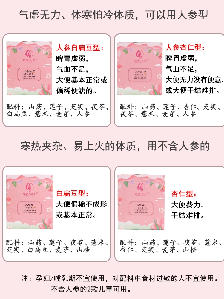 Eight-jewel powder powder white lentil mountain drug powder, the traditional original taste of adult children