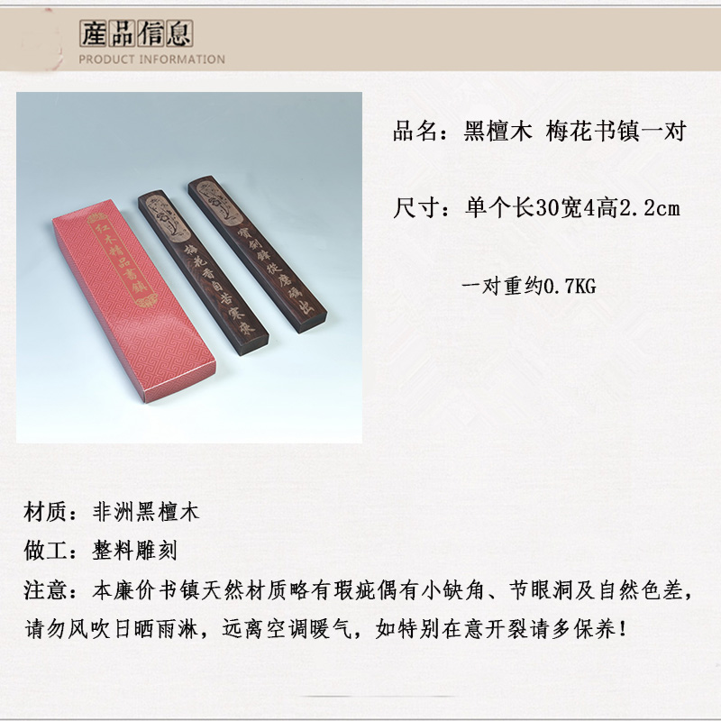 Black Sandalwood Plum Blossom Town Paper Town Ruler Press Paper Press Book Press Pressure Paper With Press Ruler Paper Furniture Vintages High Density Engraving