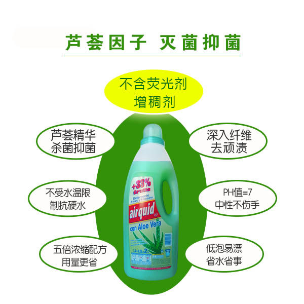 Clearance Spain imported aloe vera laundry detergent 2L antibacterial and bacteriostatic mild household lasting fragrance