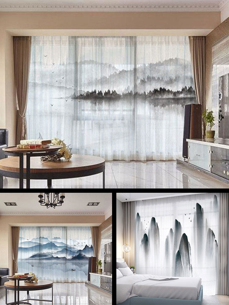 Chinese style,Other Roman Blinds Common Pleats Perforated Curtain Window Mantle Curtain Wear Rod Curtain