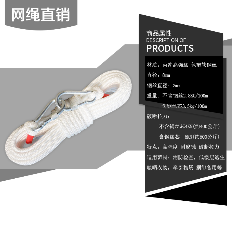8mm steel wire core nylon rope home safety rope emergency rescue fire escape rope outdoor mountaineering safety rope