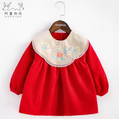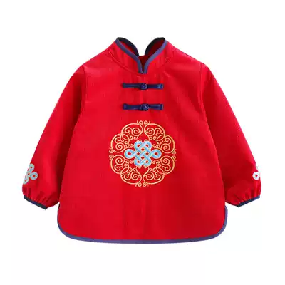 Chinese style corduroy coat boys and girls wear cotton outside Winter Children's gown anti-dirty long sleeve bib