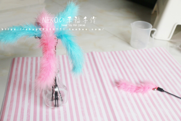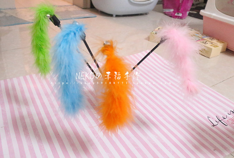 Solid color short rod Plush turkey hair cat stick Pet cat toy bright color with bell