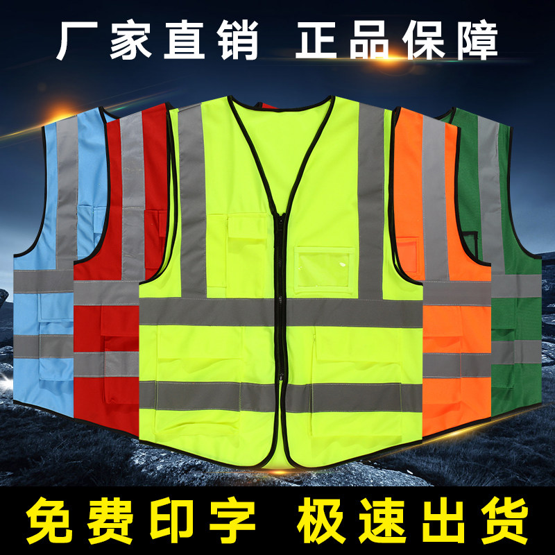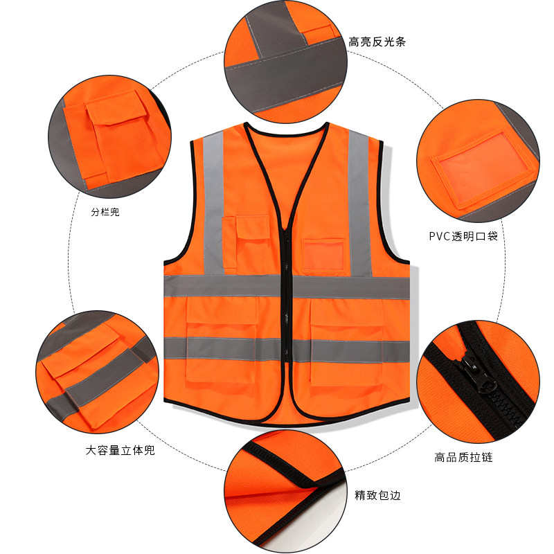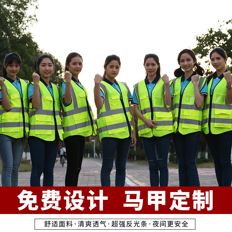 Customized Night Traffic Sanitation Workers Workwear Vest Vest Multi-Pocket Zipper Advertising Strong Reflective Vest