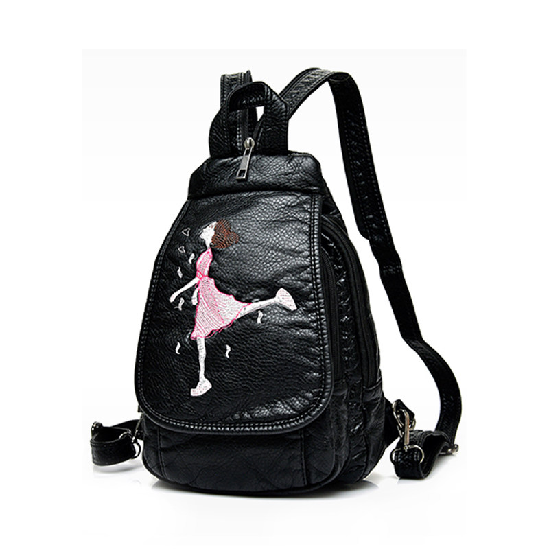 2020 New Washed Leather Embroidered Mini Backpack Women's New Casual Small Backpack Ladies Dual-purpose Chest Bag Soft Leather
