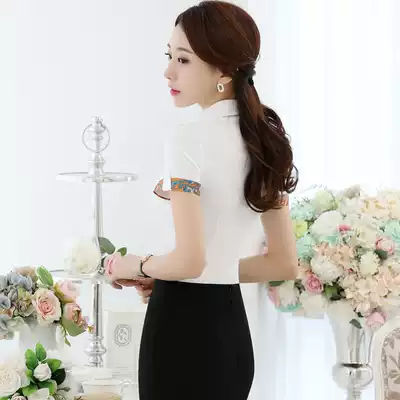Dining Room Cafe Waiter Short Sleeve Blouse Summer Shirt Front Cashier Overalls Half Sleeve