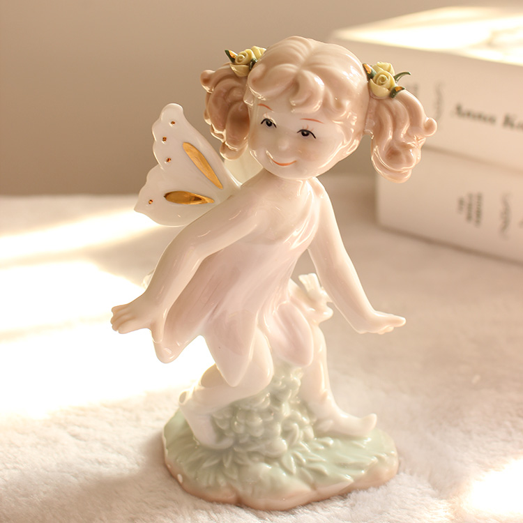 Small Angel Girl High Temperature Ceramic Pendulum Decoration Cute Doll Decoration Partition Children's Room-Like Board Room Home Furnishing
