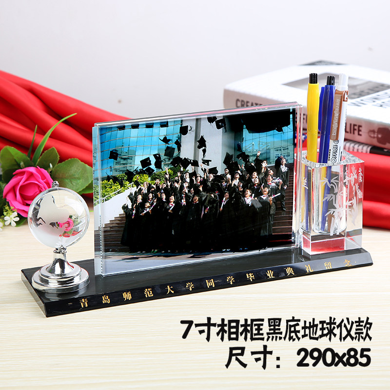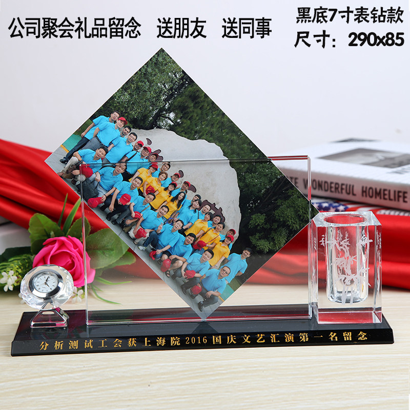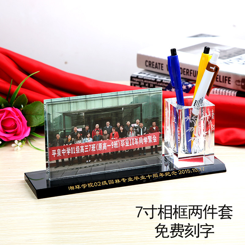 School reunion souvenir custom crystal photo frame pen holder ornament three-piece set of practical creative company gifts for students