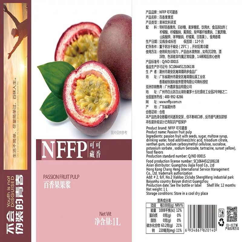 NFFP Cocoa Tibetan Passion Fruit Pulp 1L Passion Fruit Concentrate Juice Contains Pulp Dietary Fiber Jam Sauce