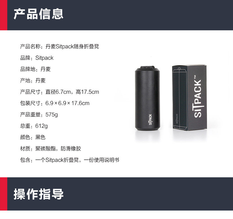 Denmark Sitpack portable folding stool queuing artifact outdoor subway portable seat folding stool small