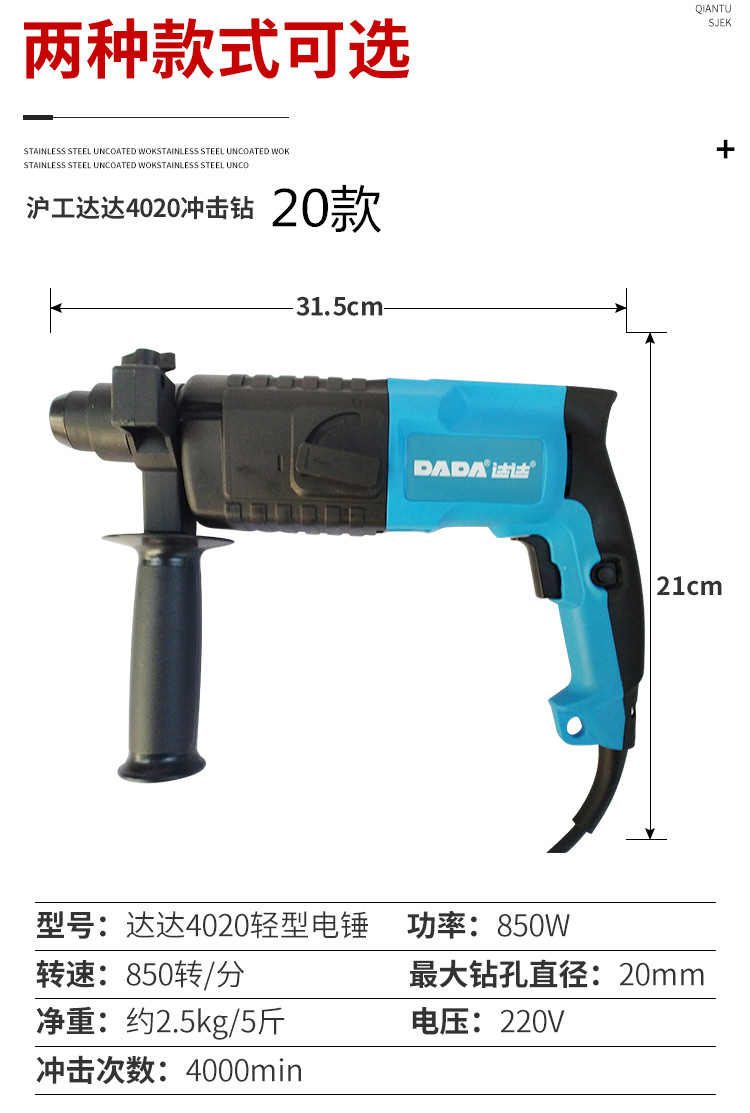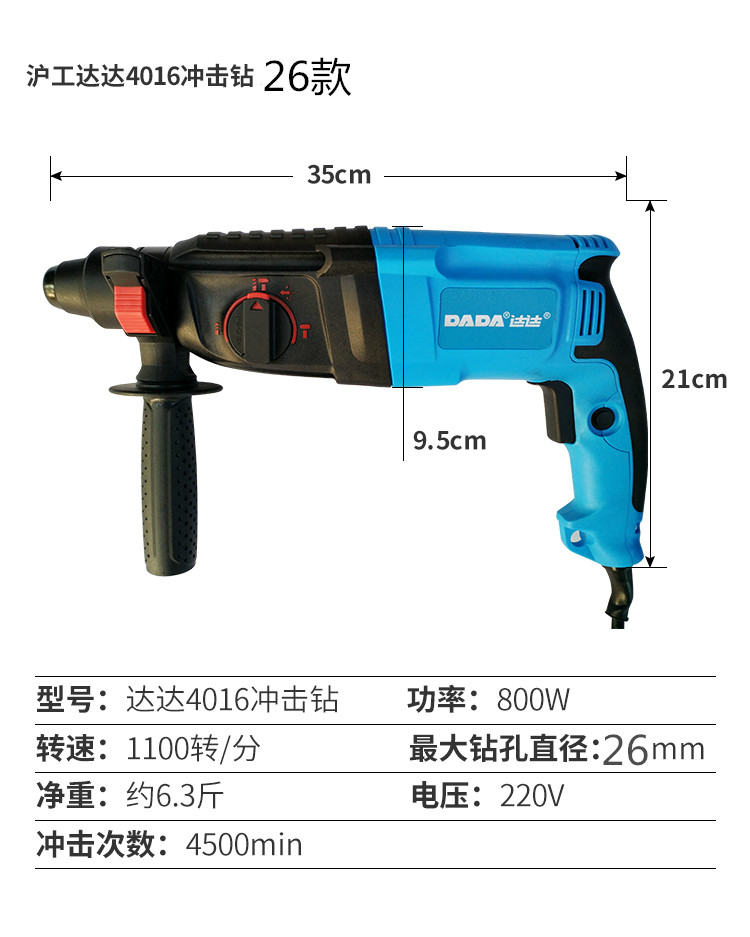 Shanghai working Dada light electric hammer drill impact drill electric pick electric hammer drill Three-function Domestic industrial grade Brick Wall Concrete drilling
